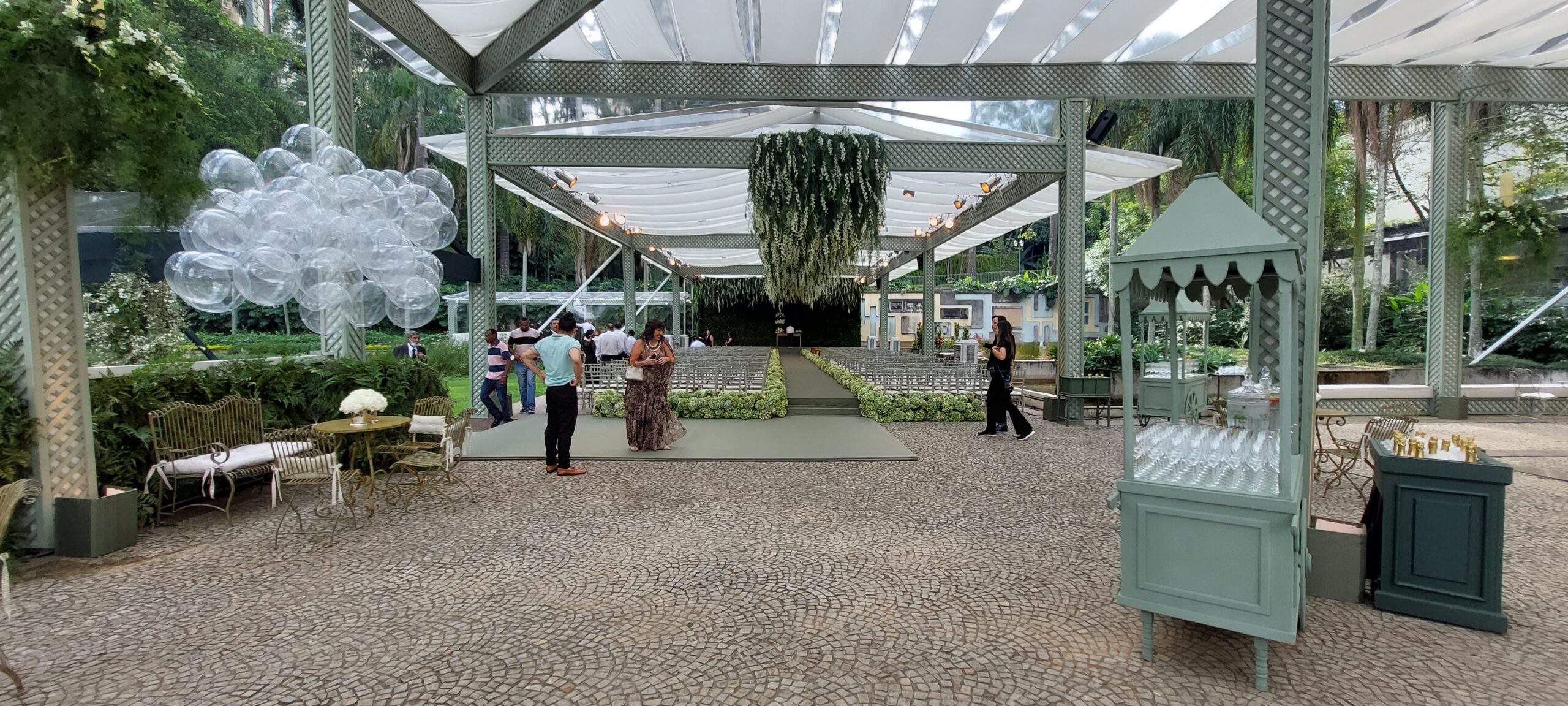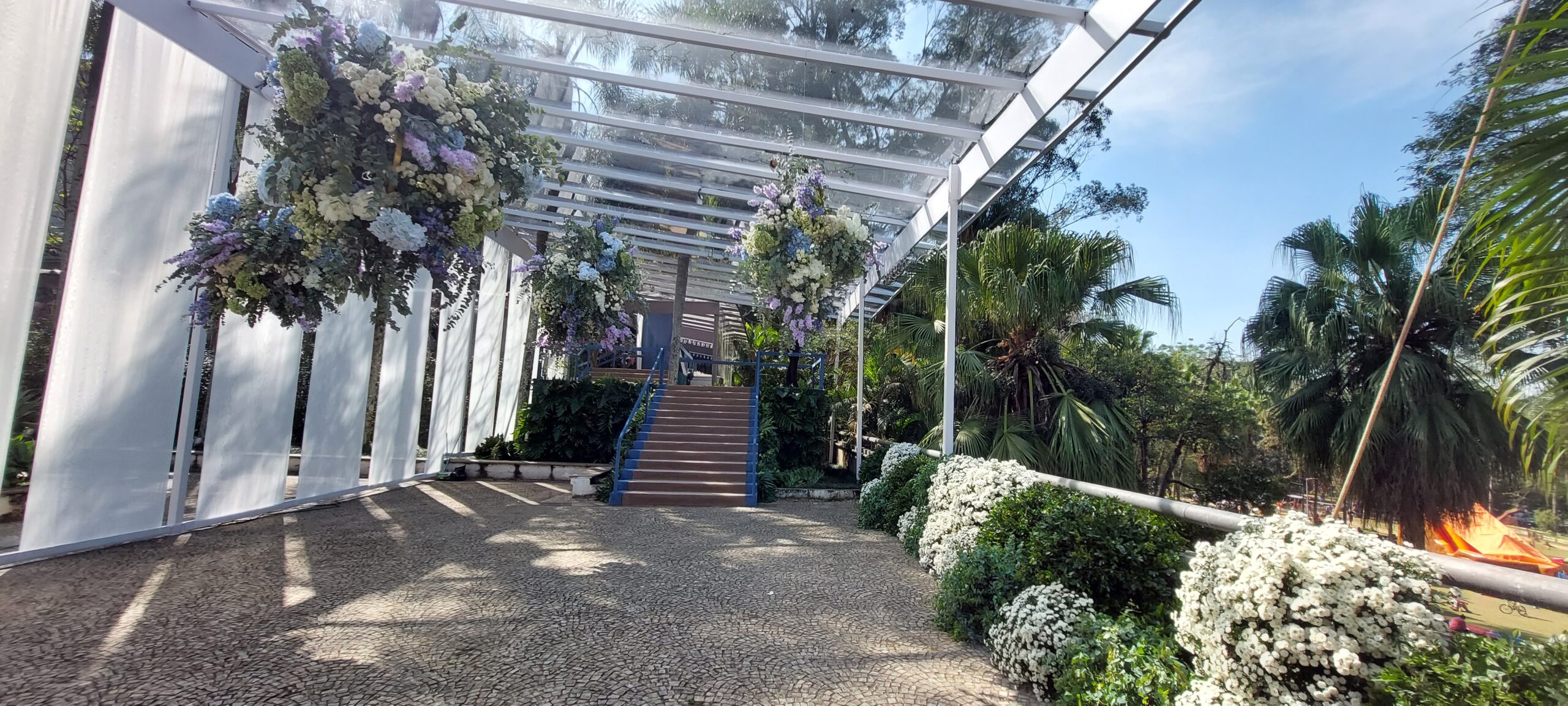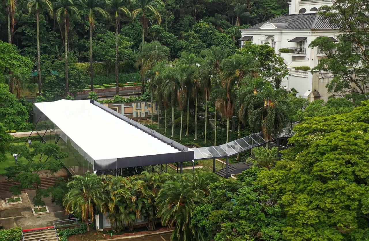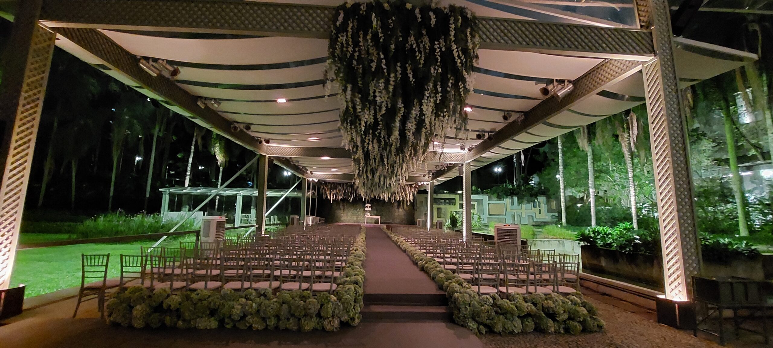 Um Ambiente aberto, arborizado e com a possibilidade de instalação tetos e tendas.