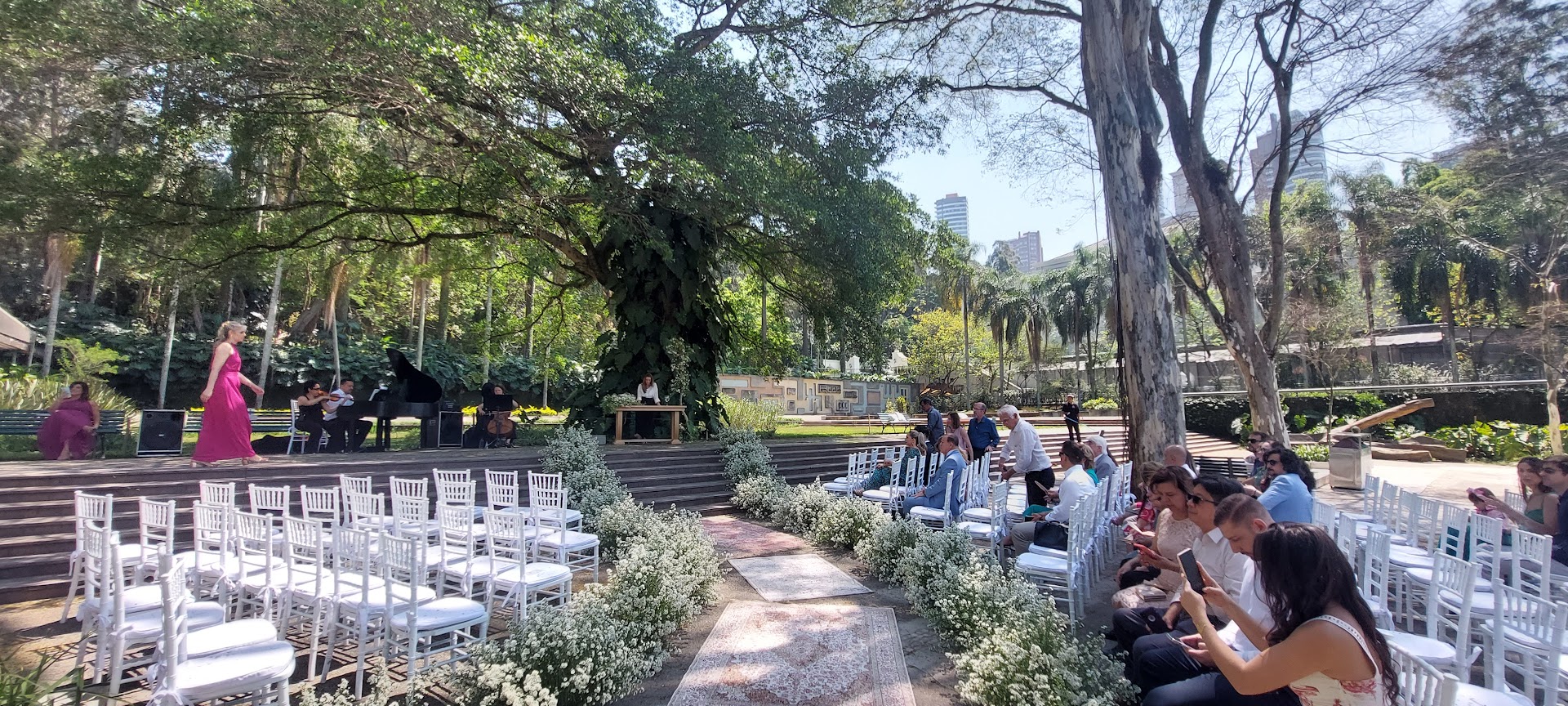 Com 4.000 m² de beleza e sofisticação, o Jardim Burle Marx reúne os espaços mais encantadores do Parque Burle Marx para criar um ambiente único e versátil, perfeito para grandes celebrações. Este espaço inclui o Espelho D'Água, o Espaço Pergolado e o Pau de Ferro, integrando diferentes cenários em uma experiência completa para até 1.000 convidados.